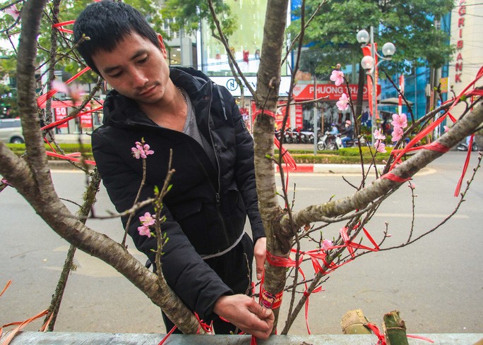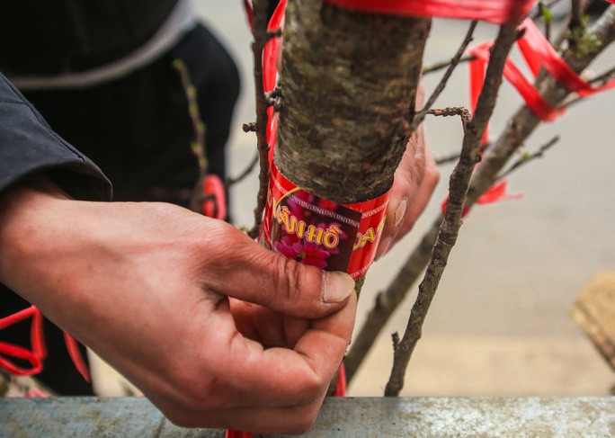 Anh Hoàng Văn Lê cho biết: "Năm nay Thủ tướng yêu cầu cấm chặt đào rừng tự nhiên mang về thành phố chơi Tết nên chúng tôi nhập được cành đào nào xuống dưới Hà Nội đều phải dán tem để những người mua biết được nguồn gốc xuất xứ nhằm yên tâm hơn khi mua được những cành đào đẹp về".
