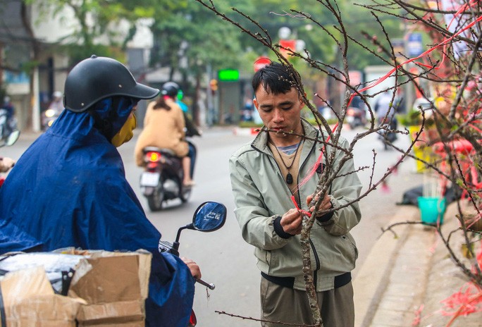 Chỉ còn hơn 10 ngày nữa người dân Việt Nam đón Tết Nguyên đán, theo ghi nhận của Báo Người Lao Động, nhiều mặt hàng được bày bán trên đường Lạc Long Quân (Hà Nội). Đáng chú ý nhất, những cành đào năm nay được các tiểu thương dán tem Vân Hồ (Sơn La) nhằm khẳng định nguồn gốc xuất xứ.