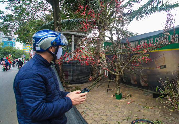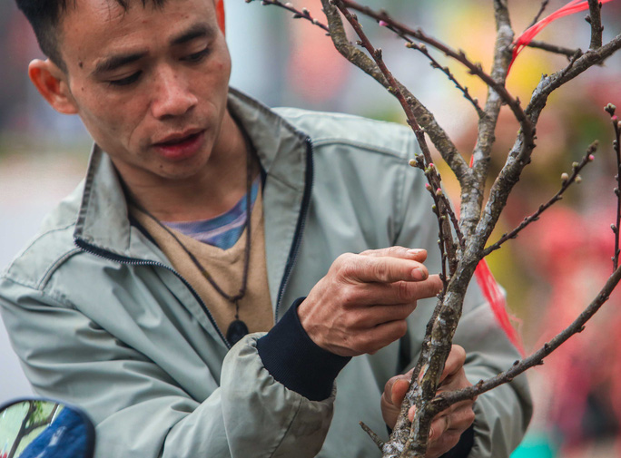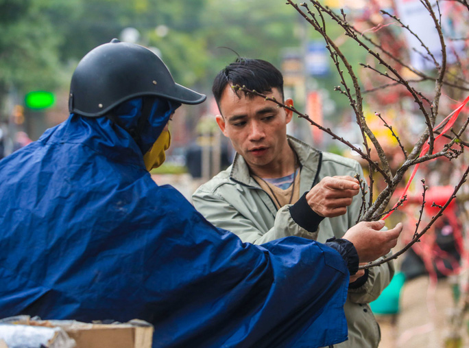 Khu vực bán của anh Hoàng Văn Lê (Vân Hồ, Sơn La) được rất nhiều người dân chơi sành chơi đến tìm hiểu, chọn mua những cành đào đẹp chơi Tết. Theo ghi nhận những cành đào mang xuống Hà Nội chủ yếu là đào phai, trên thân xuất hiện những lớp địa y, rêu xanh... Một số cành đã lác đác điểm một vài nụ và bông hoa báo hiệu mùa xuân đang về.