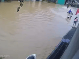 Khoảnh khắc cây cầu biến dạng khi dòng lũ đục...