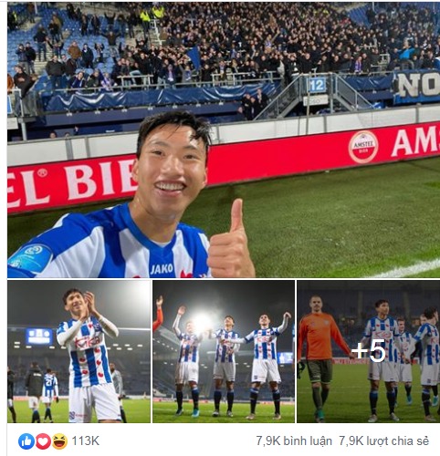 Không chỉ vậy, bài thông báo Văn Hậu ra sân: "Khi giấc mơ thành hiện thực. Khoảnh khắc đẹp, Đoàn Văn Hậu ra mắt Heerenveen" được đăng trên fanpage CLB Heerenveen cũng ghi nhận lượng tương tác khổng lồ với 113.000 lượt bày tỏ cảm xúc, 7.900 bình luận và gần 7.900 lượt share.