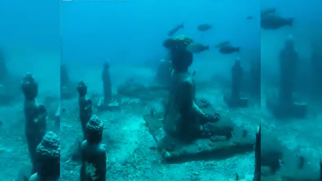 Ngồi đền dưới nước nằm ở Nusa Lembongan, Bali, Indonesia có rất nhiều tượng phật khổng lồ. Nơi này nằm giữa hai hòn đảo nhỏ ngoài khơi bờ biển Bali. Các nghệ sĩ địa phương đã nhấn chìm các bức tượng này từ 10 năm trước.