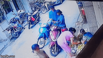 Sau khi đã trộm được chiếc túi xách, hai đối tượng nhanh chóng ra hiệu cho nhau. Người phụ nữ vội vứt lại bó hoa rồi nhanh chóng leo lên xe tẩu thoát. Dù bị mất tài sản nhưng người phụ nữ vẫn lúi húi ngồi chọn lựa hoa trong ngày mồng 1 đầu tháng mà không hề hay biết.
