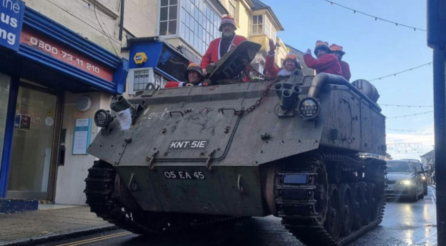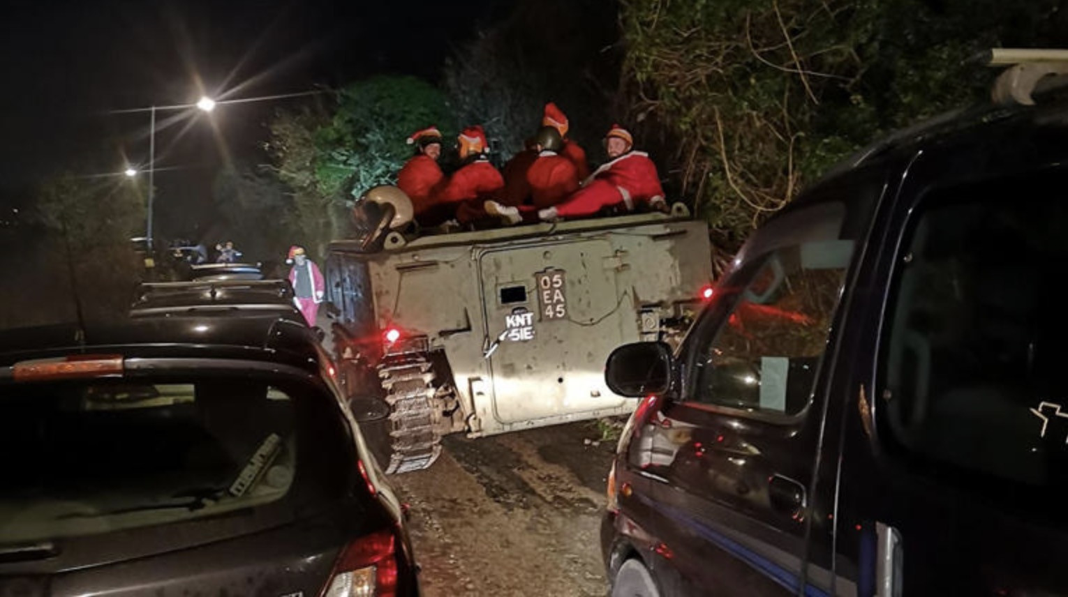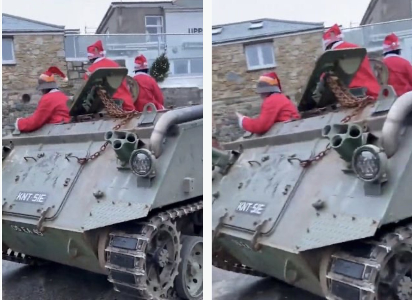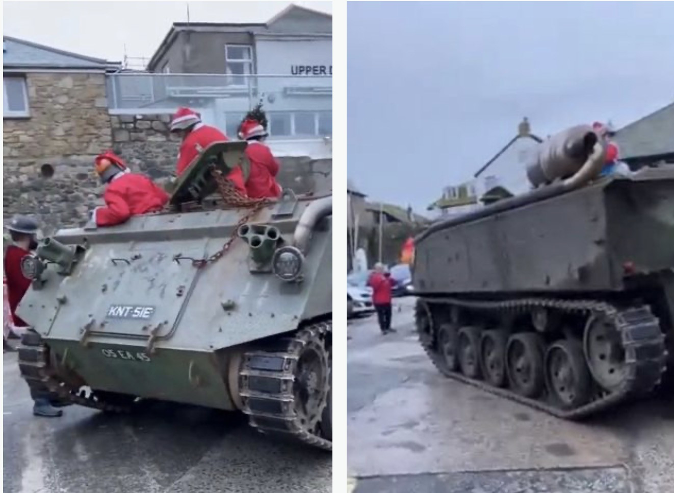 Một xe tăng chở đầy ông già Noel đã gây ra tình trạng hỗn loạn ở ngôi làng Angarrack ở Cornwall, Anh sau khi bị mắc kẹt tại một con đường nhỏ ở đây và cuối cùng phải nhờ tới cảnh sát giải thoát.