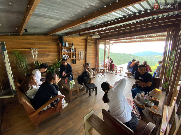 Túi mơ to: Quán cà phê quá tải khách ra vào, view có thể nhìn trọn cơn mưa sắp tới.