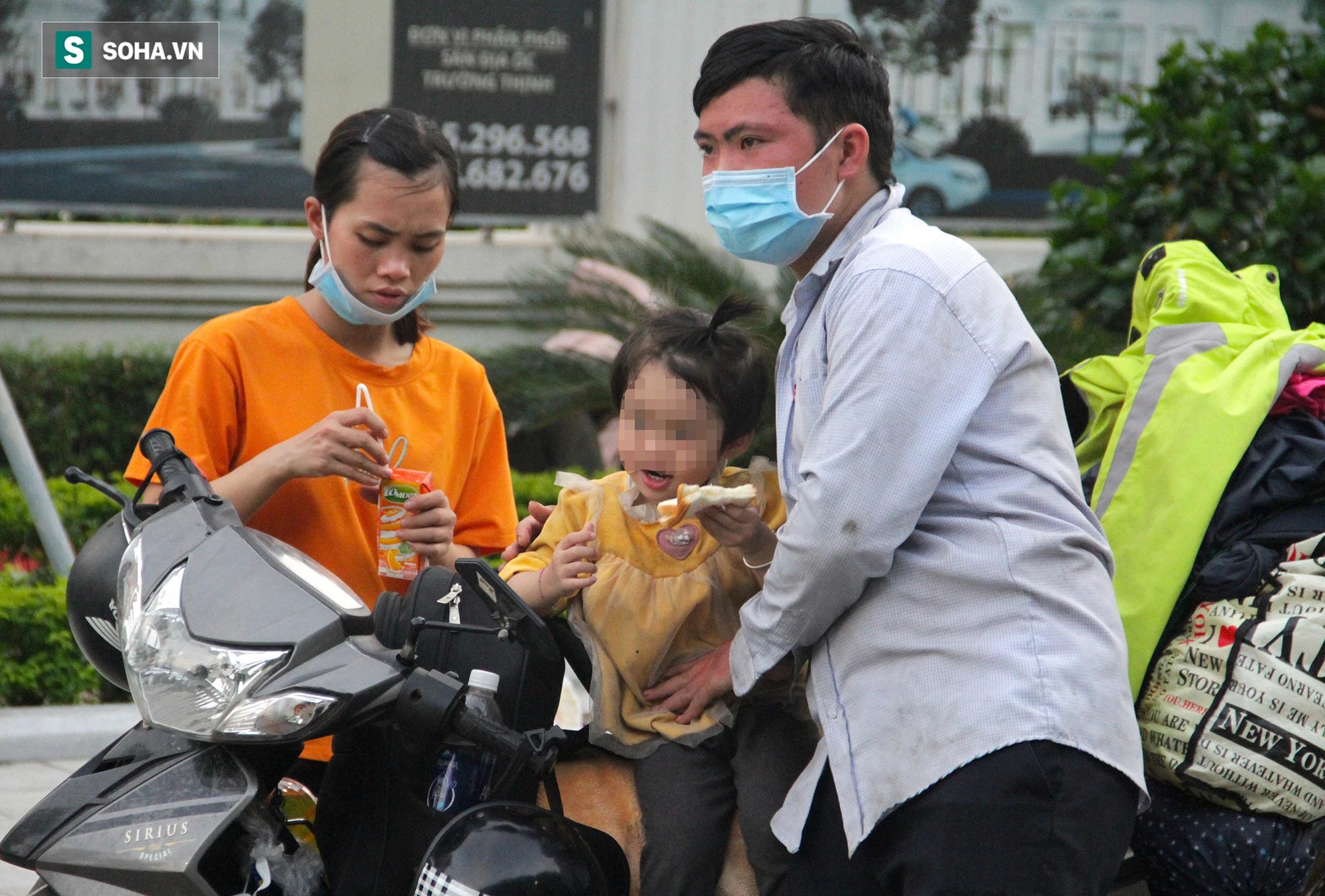 Gia đình 3 người gồm chị Lò Thị Dung (30 tuổi), anh Đinh Văn Đức cùng con gái mới hơn 2 tuổi đi xe máy vượt hơn 1000km từ Bình Dương để về quê ở tỉnh Sơn La. Chị Dung cho biết, vợ chồng chị vào mới được 2 tháng, chồng làm công ty gỗ, còn chị chưa có việc. Cả tháng nay dịch, thất nghiệp nên vợ chồng chị quyết ôm con về quê lập nghiệp.