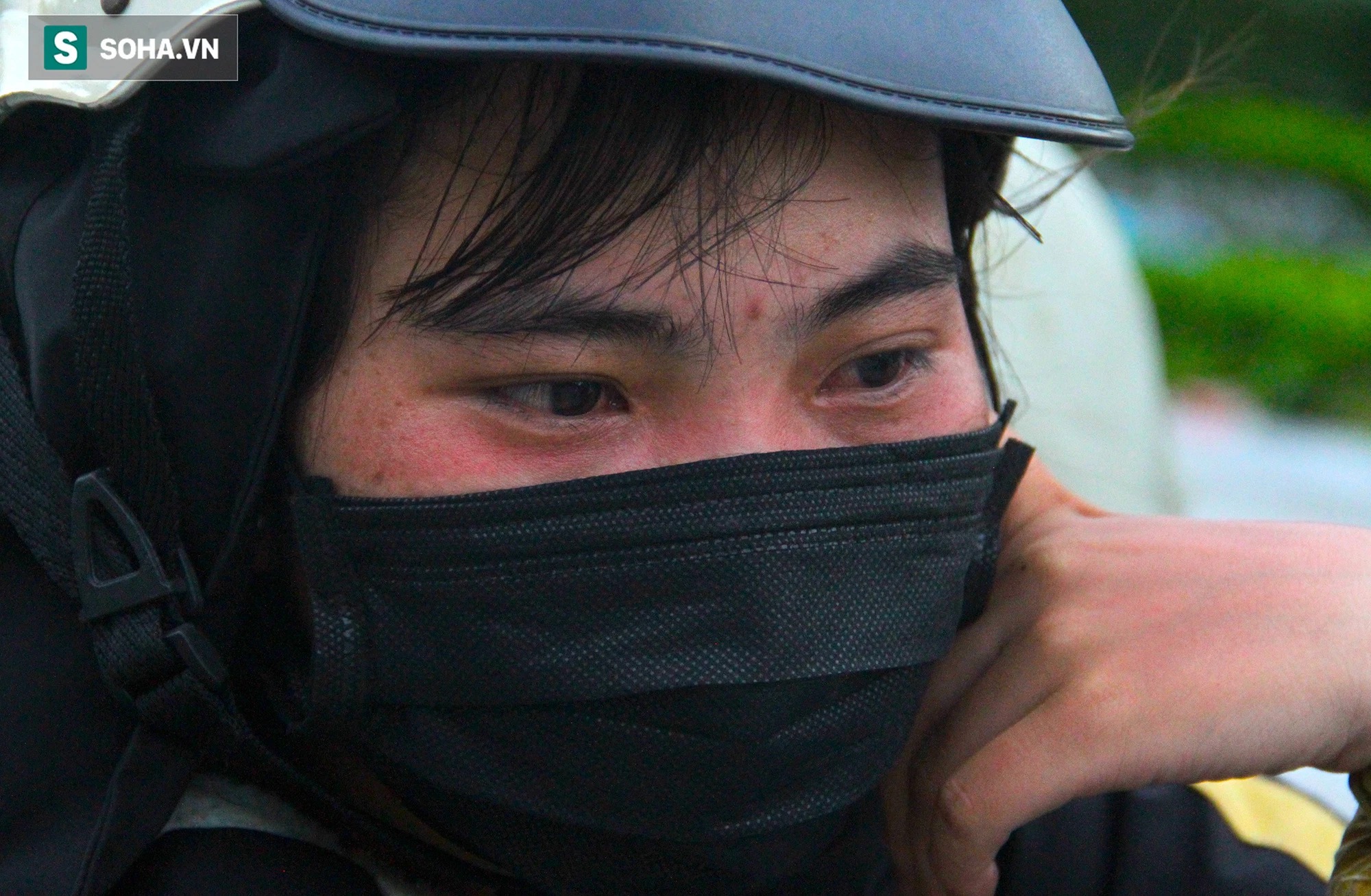 Sau hành trình hơn 1000km hồi hương tránh dịch Covid-19, đôi tay, khuôn mặt và đôi mắt chị Giàng Thị Bầu (21 tuổi, trú Phú Yên, Sơn La) đỏ ửng lên vì ngồi trên xe máy đi cả ngày nắng nóng. Chị Bầu cho biết, chị vào được 7 tháng nhưng mới làm được vài tháng thì dịch nghỉ đến bây giờ. Trước khi về quê, chị gọi điện về nhà và được bố mẹ khuyên nhủ về để ổn định cuộc sống.