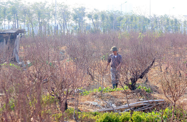 Nằm sát KĐT Dương Nội, cánh đồng đào rộng lớn thuộc địa phận Đại Mỗ (Nam Từ Liêm - Hà Nội) đang trong những ngày "chạy nước rút" để phục vụ Tết cổ truyền.