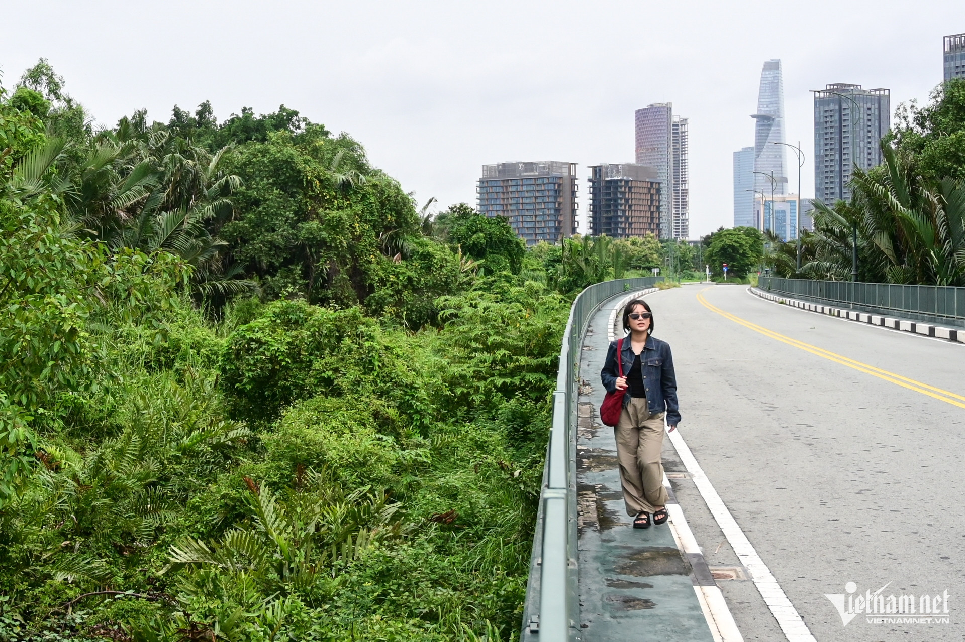 Đi xuyên qua khu vực này là 1 trong 4 tuyến đường chính của khu đô thị Thủ Thiêm. Tuyến đường dài 2,5km, được xây dựng theo thiết kế cầu cạn. Nhìn từ trên cao, đường đẹp mát mắt với thảm thực vật bao quanh. Hệ thực vật ở đây đa dạng, từ cây như thân gỗ, dây leo đến các loại cây bụi, dừa nước, lau sậy...