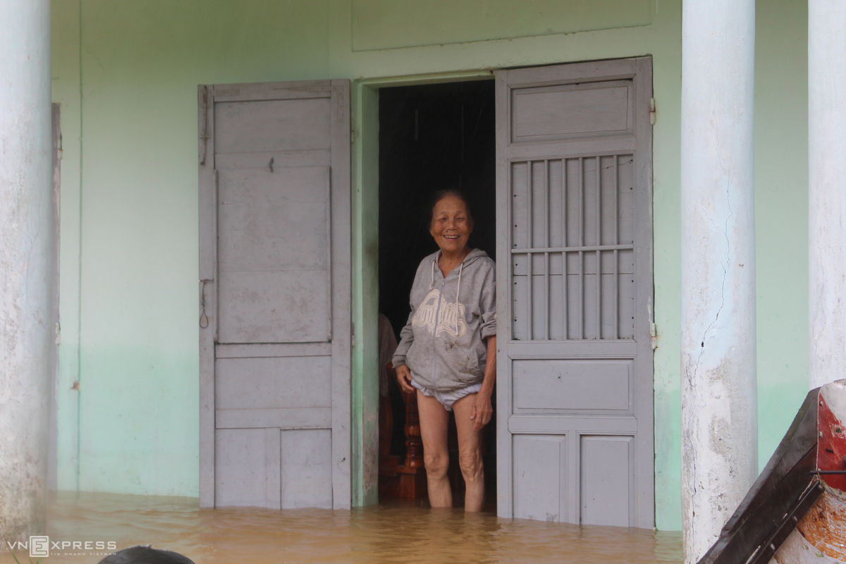 Vừa thấy đoàn cứu trợ ghé, bà Dung, 70 tuổi, vội mở cửa, nở nụ cười chào đón.