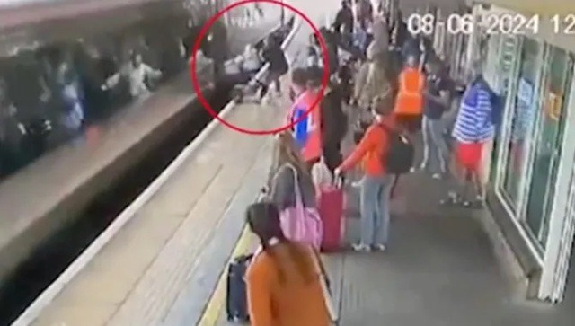 Đoạn clip ghi lại cho thấy chiếc xe đẩy trẻ em lăn về phía đoàn tàu đang di chuyển vào Ga Banbury ở Oxford, Anh vào ngày 8/6.