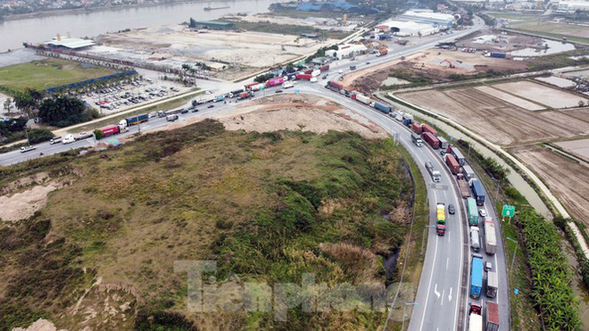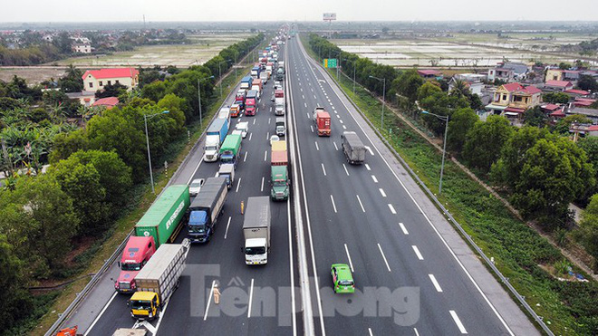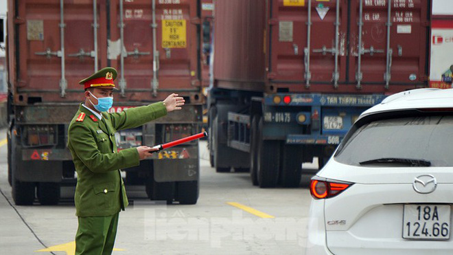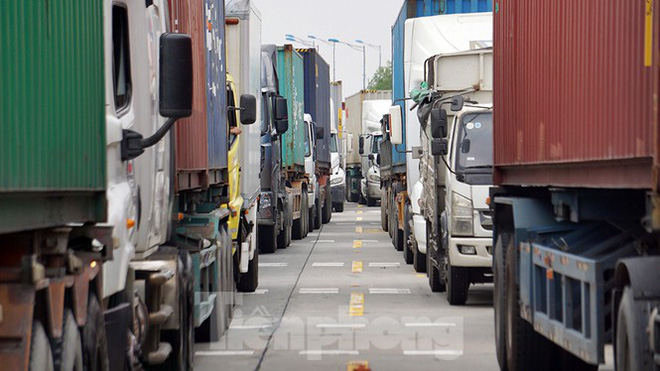 Để đảm bảo phòng chống dịch, hàng nghìn tài xế nối đuôi nhau dài hàng km tại nút giao cao tốc Hà Nội - Hải Phòng với QL10 thuộc địa phận huyện An Lão (TP Hải Phòng) để vận tải hàng hóa ra vào thành phố Cảng.