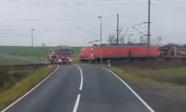 Đoạn clip ghi lại cho thấy hậu quả thảm khốc khi một chiếc xe tải bị kẹt bị đoàn tàu đâm trúng ở một ngã tư tại quận Börde, cách Berlin khoảng 100 dặm về phía tây.