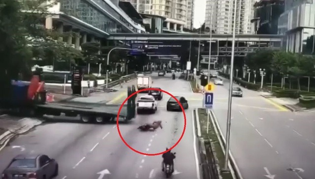 Cú va chạm giữa người đi xe máy và xe tải xảy ra ở Bangsar, Kuala Lumpur, Malaysia.