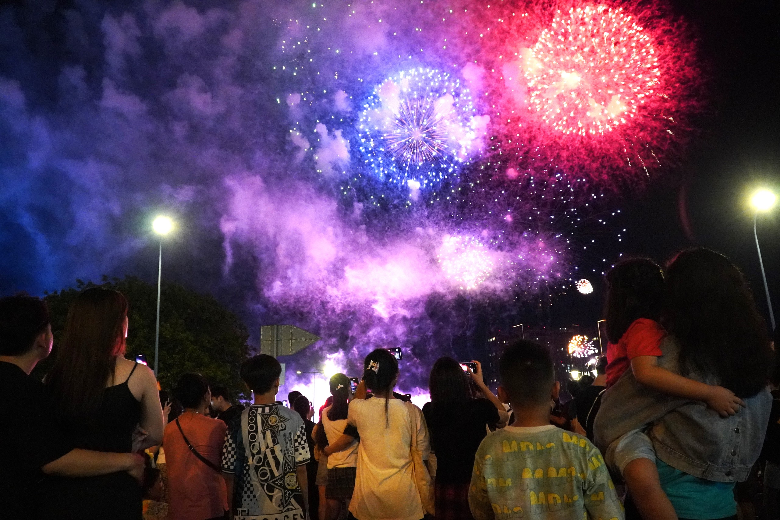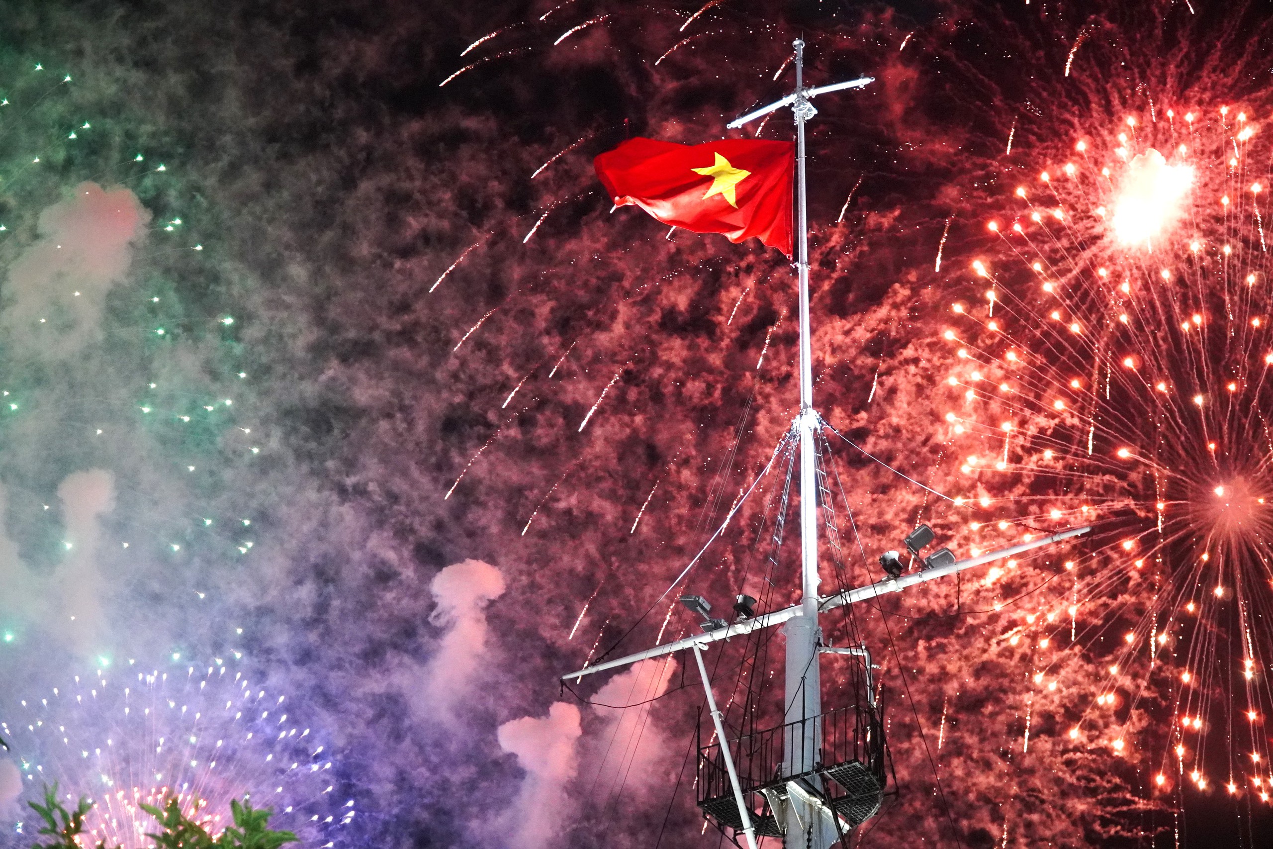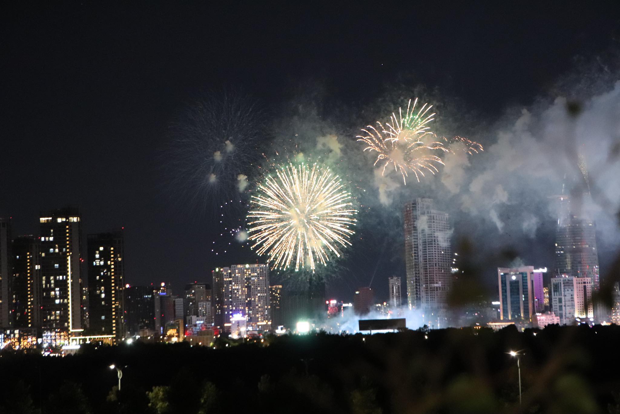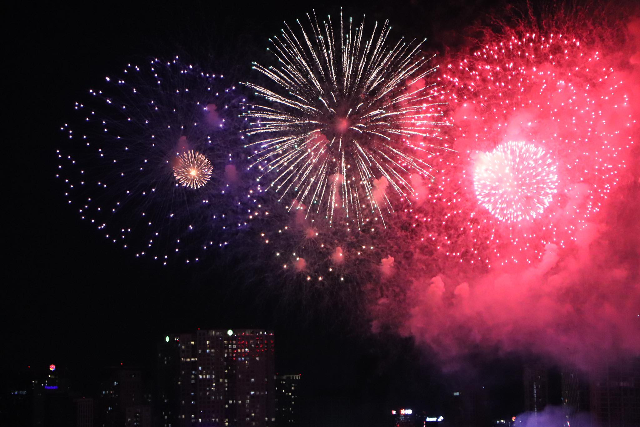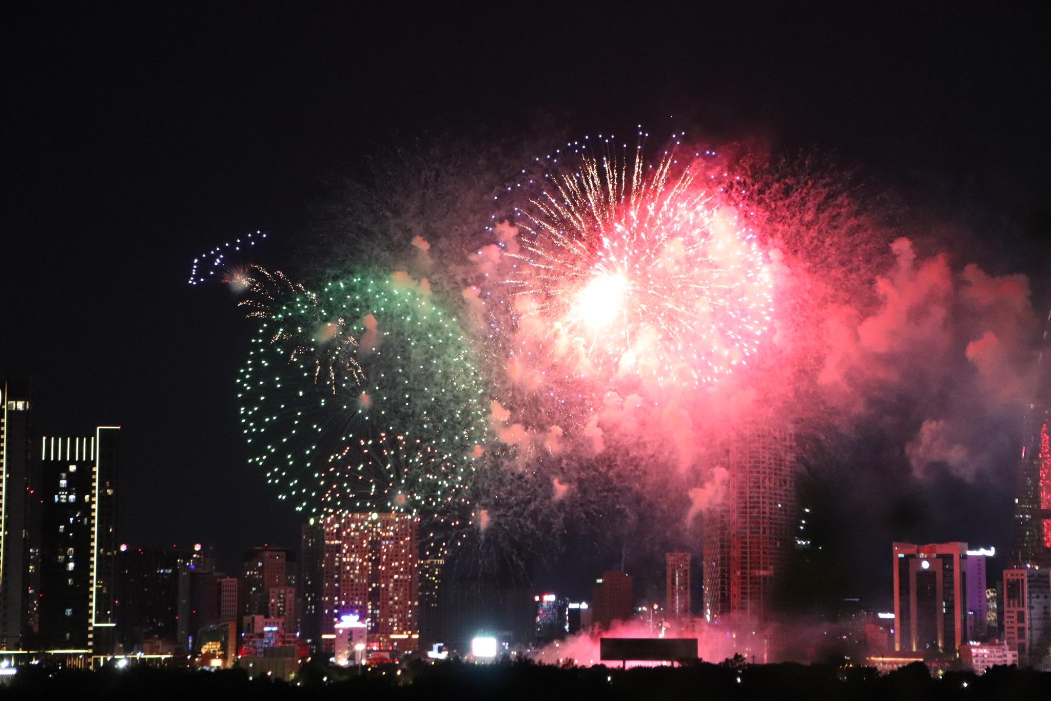 | Pháo hoa trên bầu trời sông Sài Gòn nhìn từ khu đô thị Sala, TP Thủ Đức, TP HCM |
