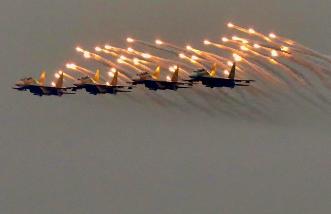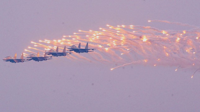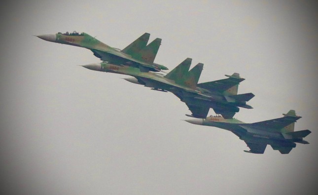 08/12/2022 18:33Xem 'Hổ mang chúa' Su-30MK2 và trực thăng vũ trang trình diễn trên bầu trời Hà Nội