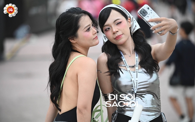 Dạo qua một vòng, đâu đâu cũng thấy những bạn nữ với gu thời trang "cháy". Để thuận tiện cho các set nhạc được sắp xếp dài hơi từ chiều đến tối muộn, các cô gái lựa chọn style thoải mái, năng động nhưng vẫn khoe được visual tối đa. Trong rất nhiều bạn trẻ tham dự, không ít người sẵn sàng bay từ Hà Nội hoặc các tỉnh thành khác để tới TP.HCM, đầu tư chi phí để có vị trí đẹp nhất để ngắm nhìn những idol.