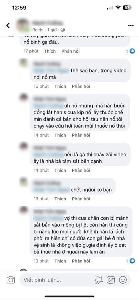 Trong khi đó, ngọn lửa được đà bùng lên đỏ rực, chắn cả lối đi khiến người hàng xóm đinh ninh có nạn nhân tử vong sau vụ nổ. Ngay khi đoạn clip được chia sẻ, một số ý kiến cho rằng vụ nổ bình ga kinh hoàng xảy ra tại TP Cẩm Phả, tỉnh Quảng Ninh. Bên dưới, nhiều người để lại bình luận phỏng đoán về nguyên nhân vụ nổ.