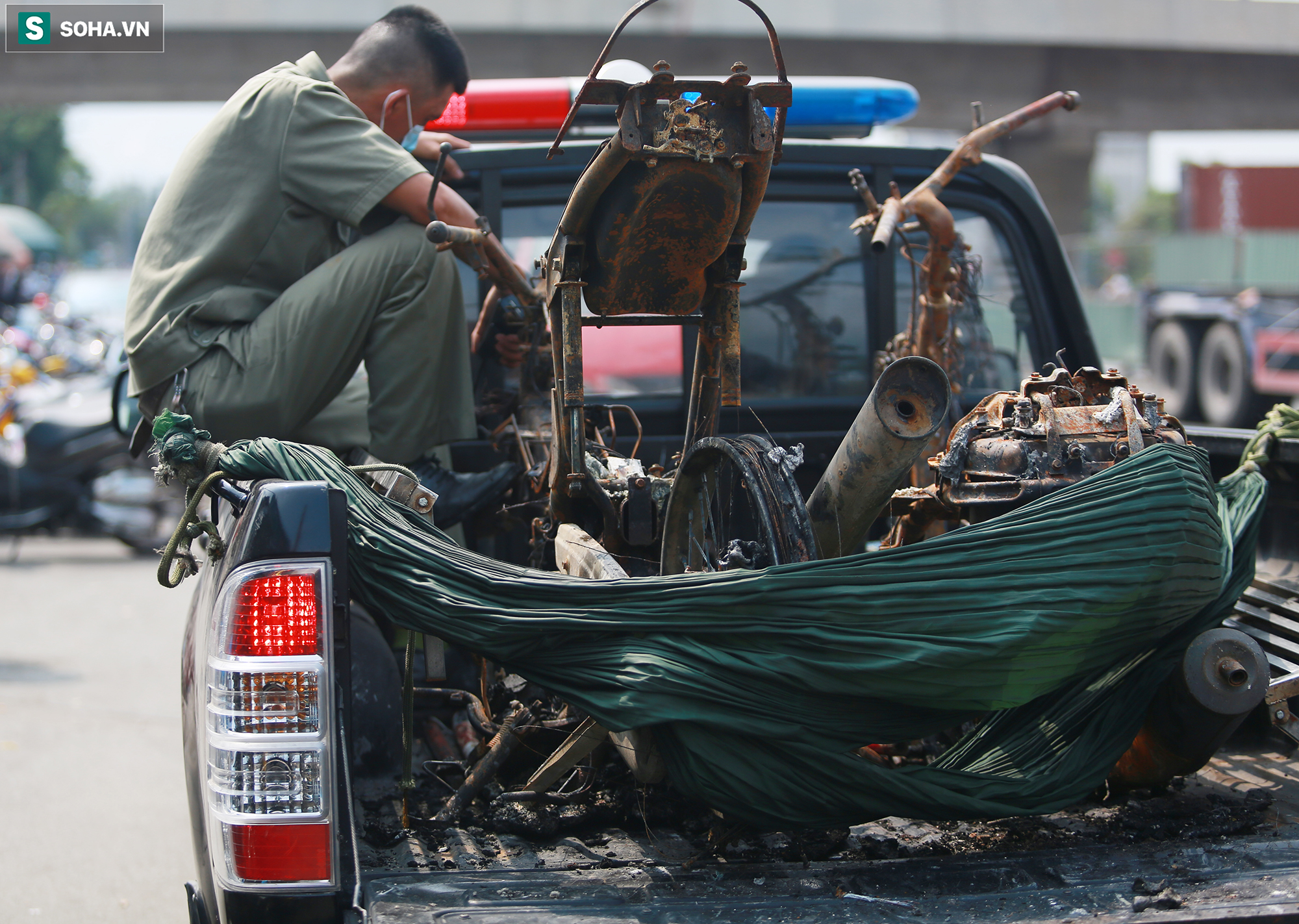Căn nhà xảy ra vụ hoả hoạn khiến 6 người chết vẫn đang bị phong toả nghiêm ngặt, 5 chiếc xe máy cháy trơ khung được lực lượng chức năng đưa đi khỏi hiện trường.