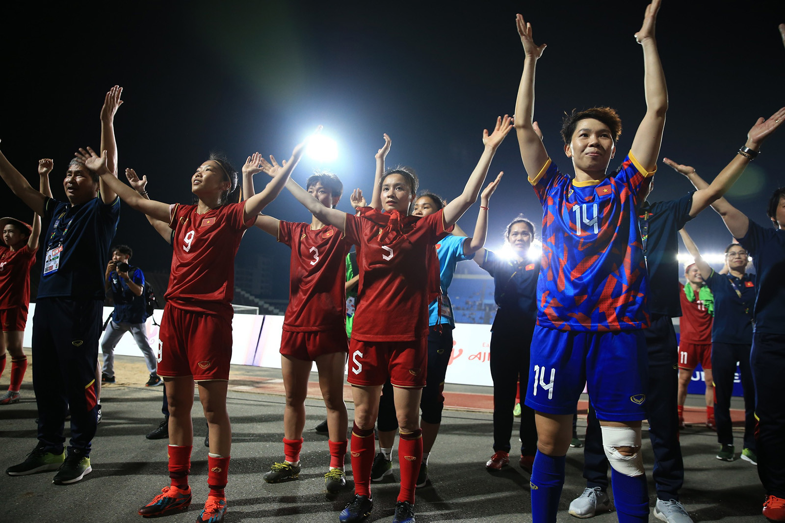 Huỳnh Như, Thanh Nhã tỏa sáng trong đêm chung kết, giúp tuyển nữ Việt Nam làm nên lịch sử với tấm HCV SEA Games thứ tư liên tiếp.