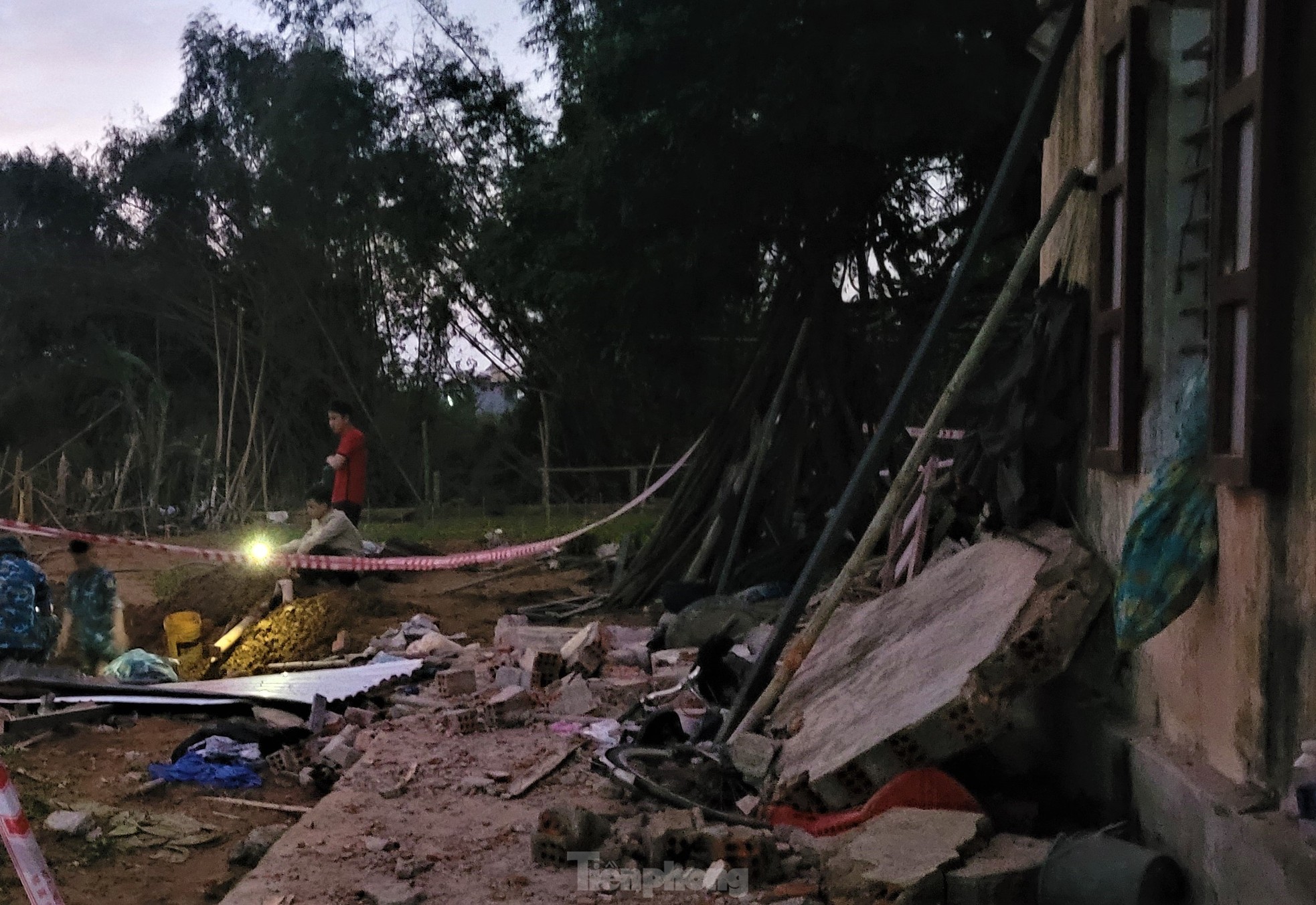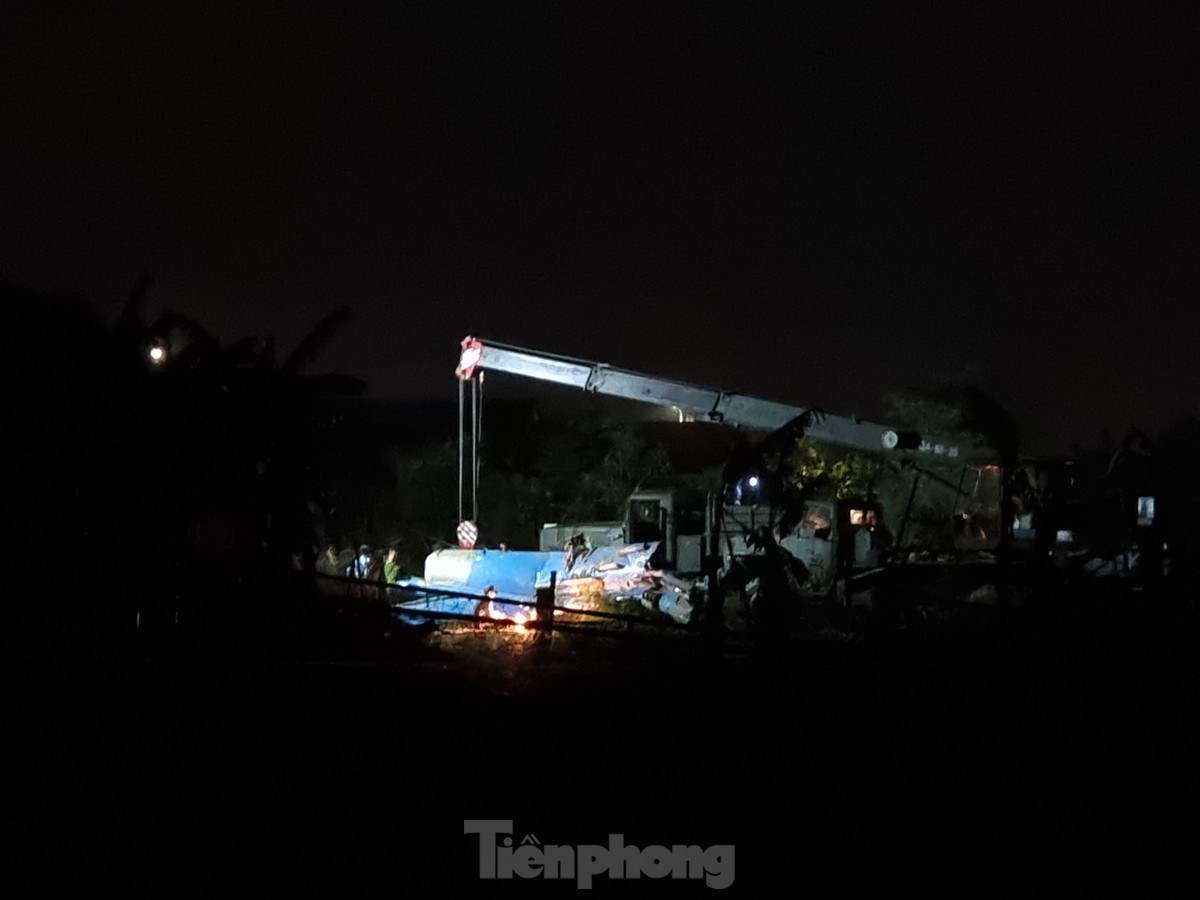 Tiếng đào, cưa, va đập... dội lên nơi máy bay quân sự Su-22 rơi hệt như một công trường. Trong đêm, hàng trăm chiến sĩ vẫn bám trụ lại hiện trường để tìm lại toàn bộ mảnh vỡ, đưa xác máy bay ra khỏi khu dân cư.