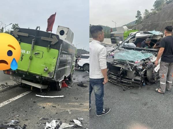 Hiện trường kinh hoàng ô tô 7 chỗ tông đuôi xe hút bụi trên cao tốc Hải Phòng - Móng Cái, tài xế mắc kẹt trong cabin -