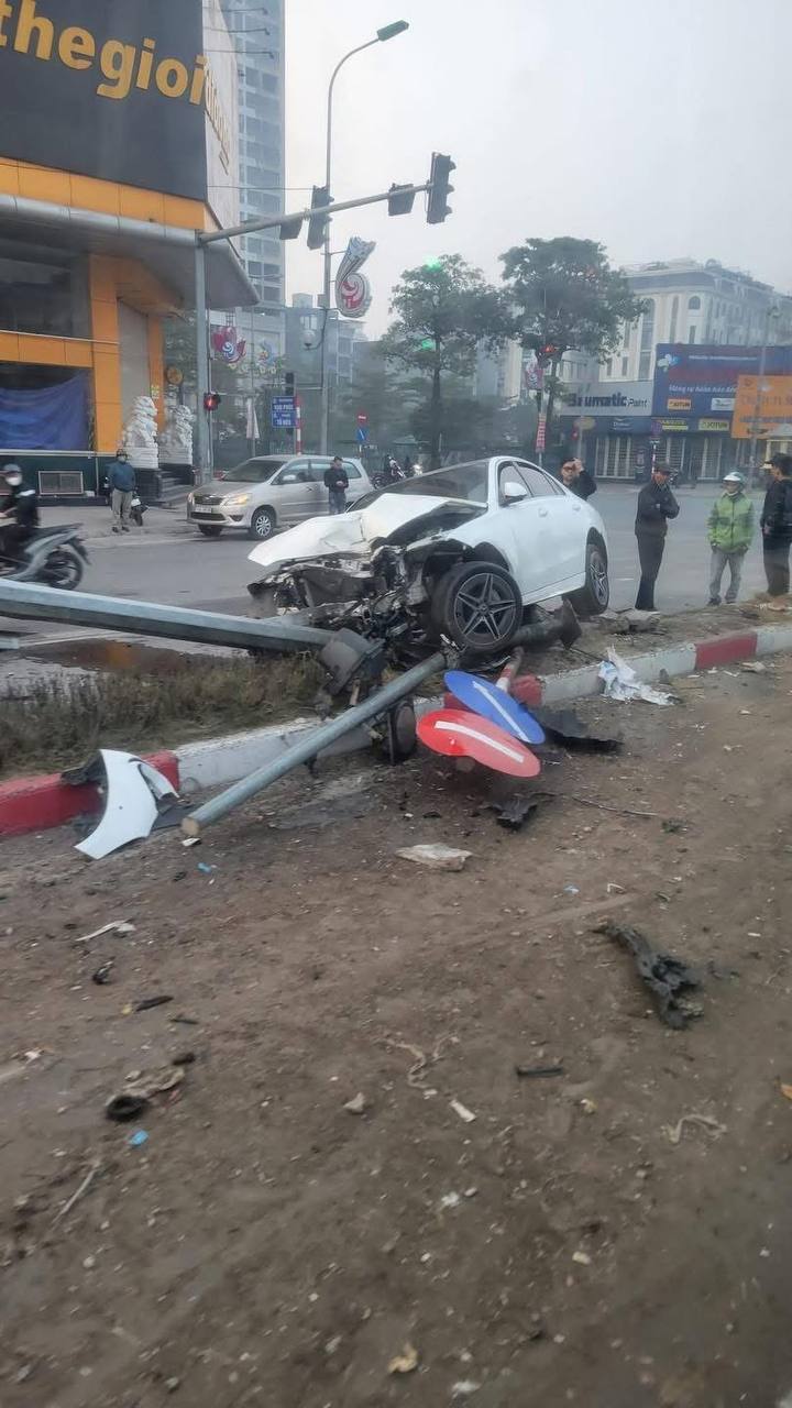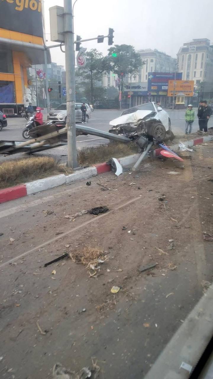 May mắn, tài xế không bị thương nhưng từ những hình ảnh ở hiện trường có thể thấy chiếc xe đã hư hỏng nghiêm trọng, đặc biệt phần đầu xe gần như biến dạng sau tai nạn, các mảnh vỡ vương vãi khắp nơi.