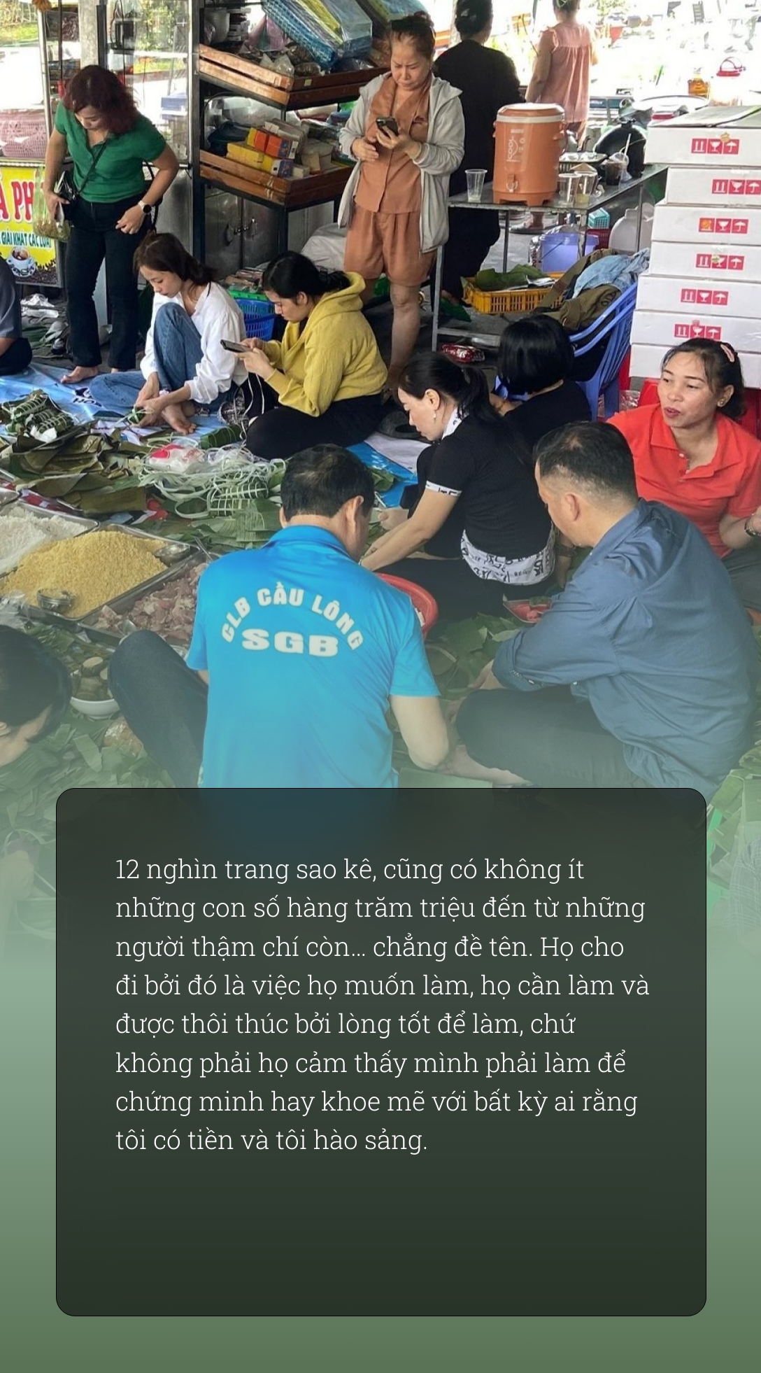 12 nghìn trang sao kê, cũng có không ít những con số hàng trăm triệu đến từ những người thậm chí còn… chẳng đề tên. Họ cho đi bởi đó là việc họ muốn làm, họ cần làm và được thôi thúc bởi lòng tốt để làm, chứ không phải họ cảm thấy mình phải làm để chứng minh hay khoe mẽ với bất kỳ ai rằng tôi có tiền và tôi hào sảng.