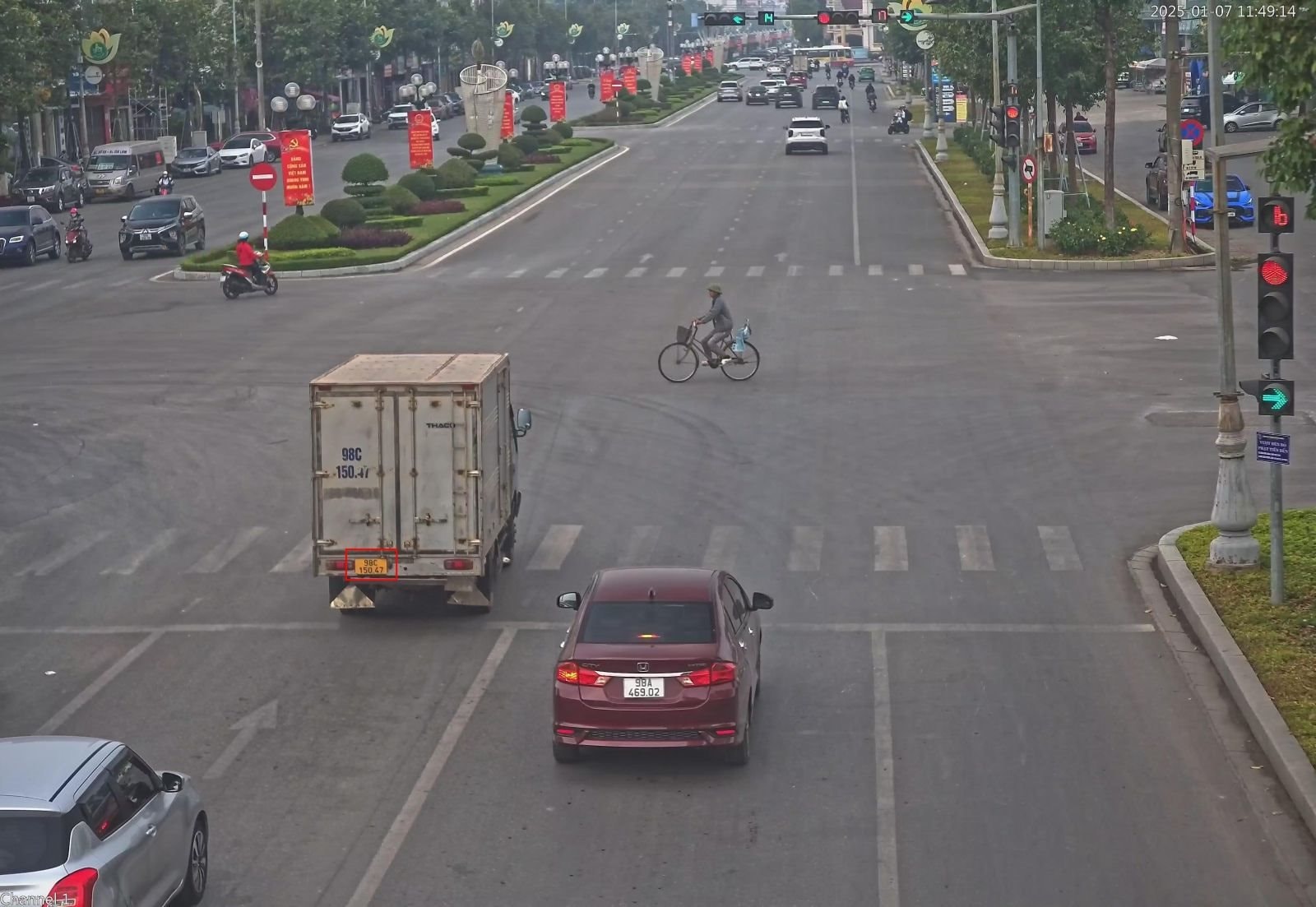 Qua hệ thống camera giám sát giao thông, Công an TP (Bắc Giang) đã phát hiện 127 phương tiện vi phạm trật tự giao thông từ 6/1 đến 12/1/2025, trong đó: 25 phương tiện vượt đèn đỏ, 29 phương tiện lấn làn, vi phạm vạch kẻ đường, 28 phương tiện không đội mũ bảo hiểm, 26 phương tiện rẽ trái tại nơi có biển cấm, 19 phương tiện chạy quá tốc độ quy định.