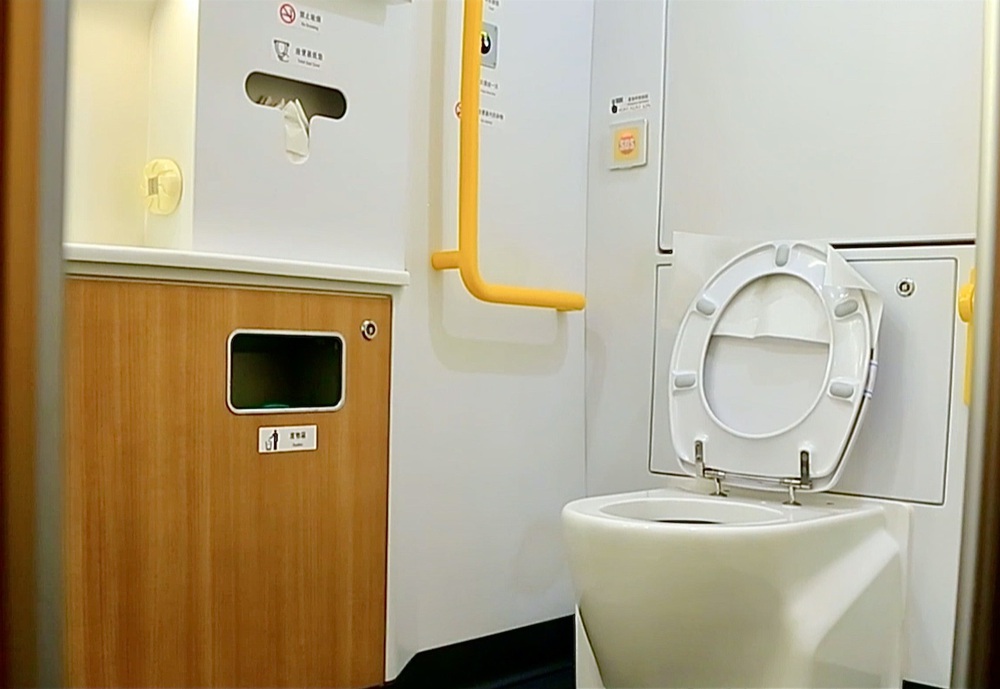 Thêm vào đó, ở khu vực rửa mặt, sử dụng thiết bị cảm ứng như vòi nước… Thiết bị vệ sinh hoạt động như thiết bị lắp trên máy bay, tức là theo nguyên lý hút chân không, tiết kiệm nước, chưa đến 0,47 lít/lần xả nhưng vẫn đảm bảo sạch sẽ, không mùi.