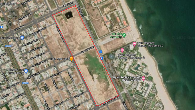 Cụ thể, 2 khu đất có 4 mặt tiền đường Minh Mạng - Trường Sa - Nguyễn Khắc Viện - Trần Quốc Hoàn (quận Ngũ Hành Sơn). Trong đó, mặt tiền đường Trường Sa là tuyến đường biển đẹp nổi tiếng Đà Nẵng, kéo dài đến tận phố cổ Hội An (Quảng Nam).