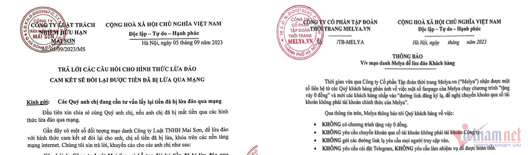 Từ tháng 8, công ty luật Mai Sơn đã phát hiện có nhiều trang Facebook mạo danh chạy quảng cáo thu hồi tiền treo trên các nền tảng. Dù công ty có thực hiện các biện pháp tuyên truyền trên fanpage, website… cũng không thể ngăn được số nạn nhân bị lừa mất tiền.