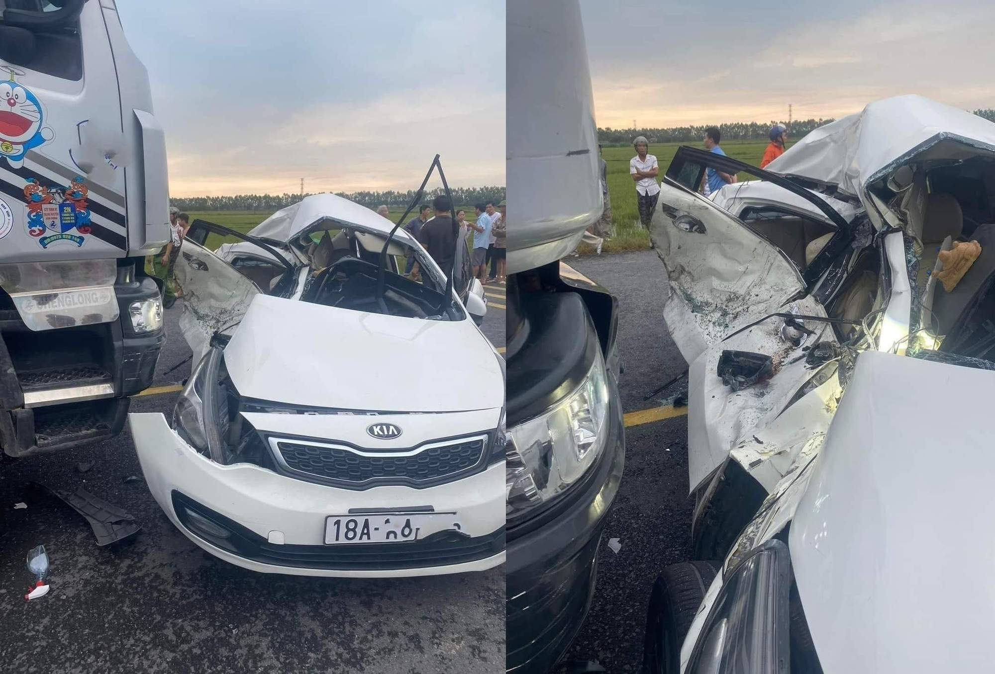Cú va chạm mạnh khiến nữ tài xế và 1 cháu bé tử vong, bé còn lại được chuyển viện cấp cứu tại Hà Nội. Còn em gái nữ tài xế bị thương nhẹ, được cấp cứu tại bệnh viện tỉnh Nam Định.