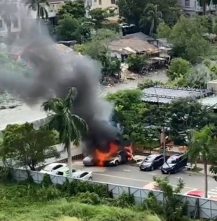 Vào tối 13/10, mạng xã hội bất ngờ xuất hiện đoạn video quay cảnh hai chiếc xe ô tô đang bốc cháy ngùn ngụt trong bãi đỗ xe. Theo đó, sự việc được cho là xảy ra tại quận 7, TP.HCM và được người dân gần đó quay lại.