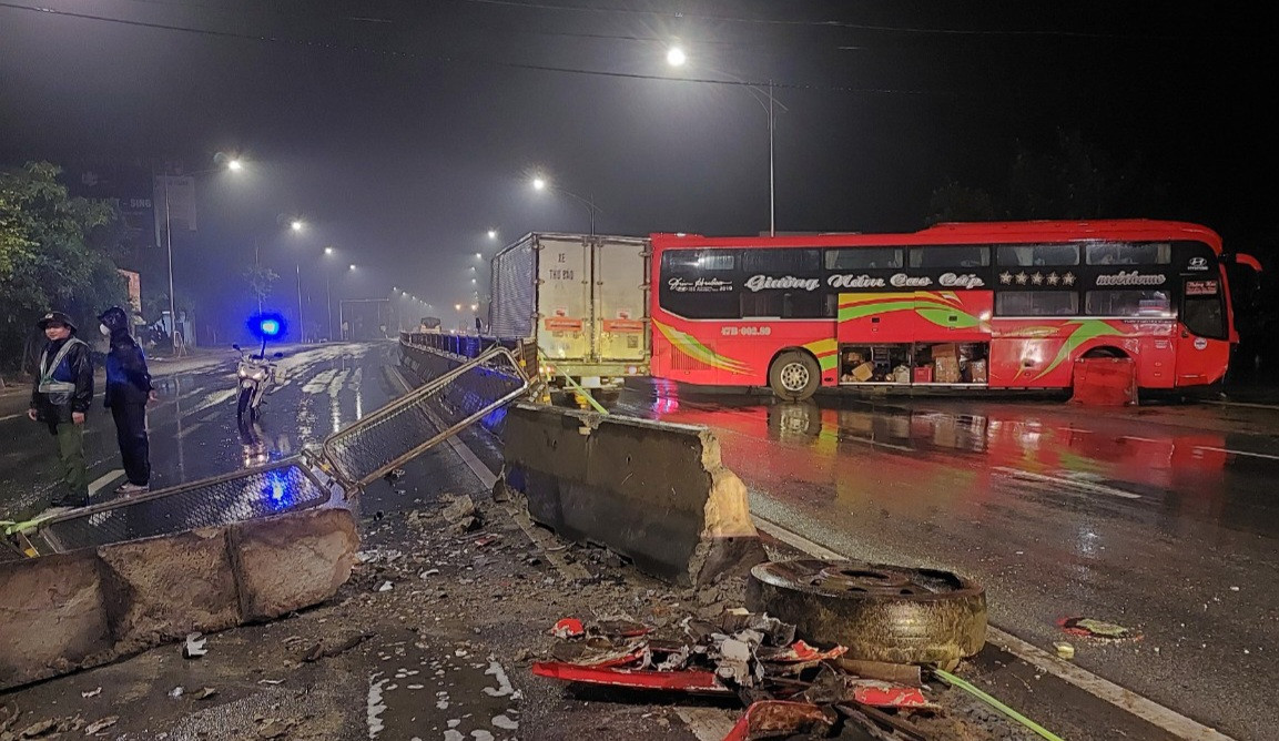 Khi tới địa phận thôn Thanh Lương, xã Quảng Xuân, huyện Quảng Trạch, Quảng Bình thì tông vào dải phân cách bê tông giữa đường.