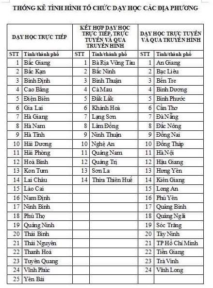 Có 14 tỉnh, thành đang kết hợp dạy học trực tiếp, trực tuyến và qua truyền hình.