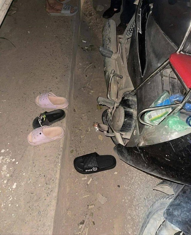 Vào tối 31/3, tại khu vực cống Xuân Quan (xã Phụng Công, tỉnh Hưng Yên), người dân phát hiện một chiếc xe máy bị bỏ lại trên cầu, kèm theo 3 đôi dép, trong đó có 2 đôi dép trẻ em.