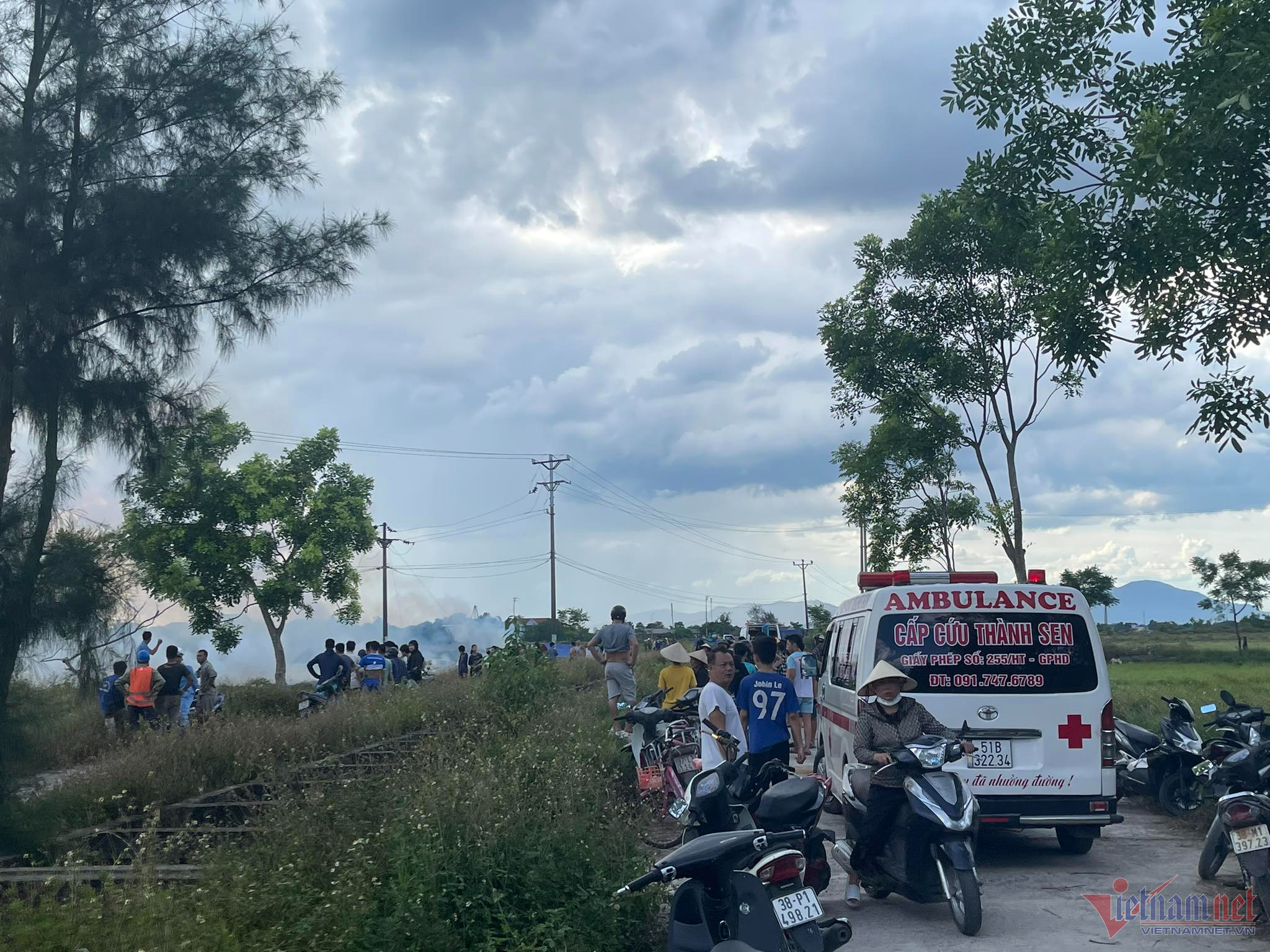 Khoảng 15h chiều 20/6, người dân thôn Liên Phú (xã Thạch Trung, TP Hà Tĩnh) giật mình bởi tiếng nổ lớn phát ra từ ngoài cánh đồng, sau đó đám cháy bắt đầu xuất hiện.
