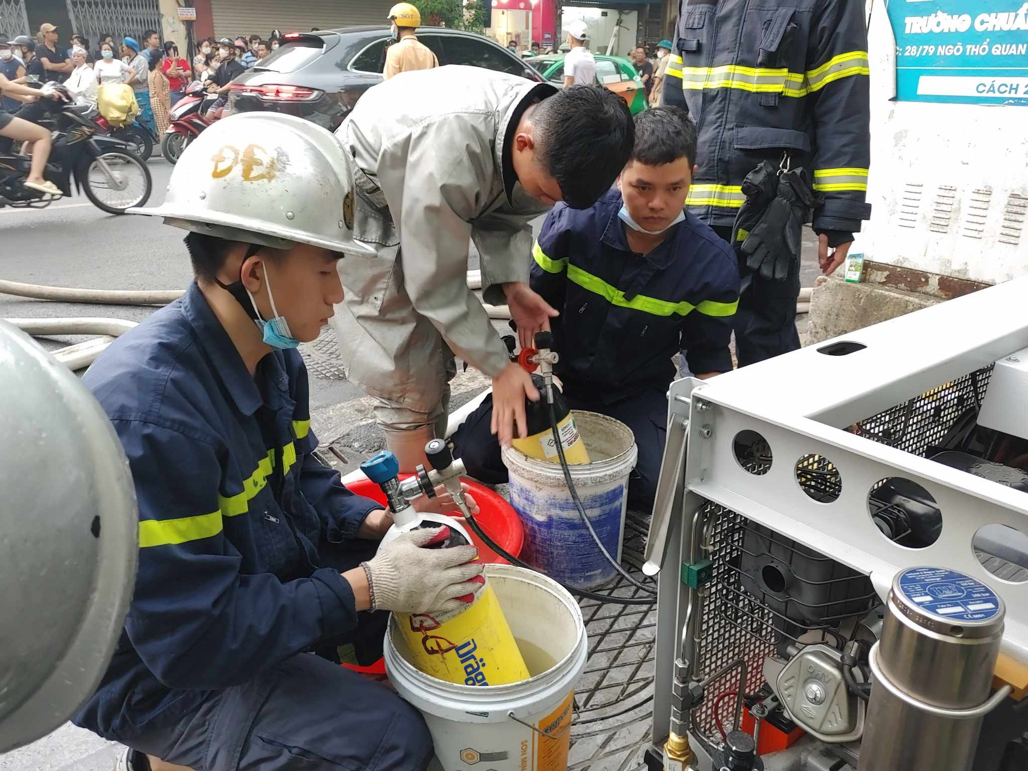 Tới 10h35, Đại tá Nguyễn Minh Khương, Phó Cục trưởng Cục Cảnh sát PCCC&CNCH (Bộ Công an) cùng lãnh đạo các phòng nghiệp vụ của Cục đến hiện trường phối hợp với lãnh đạo Công an TP Hà Nội chỉ huy công tác chữa cháy, tìm kiếm cứu nạn.