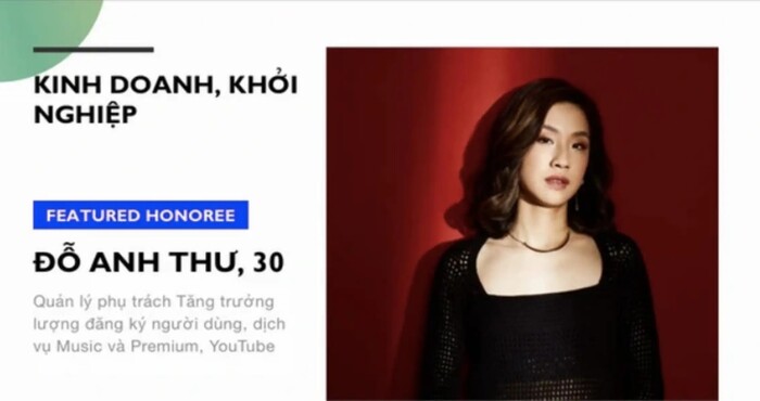 Theo đó, Đỗ Anh Thư năm nay 30 tuổi, đang là Quản lý phụ trách Tăng trưởng lượng đăng ký người dùng, dịch vụ Music và Premium, YouTube.