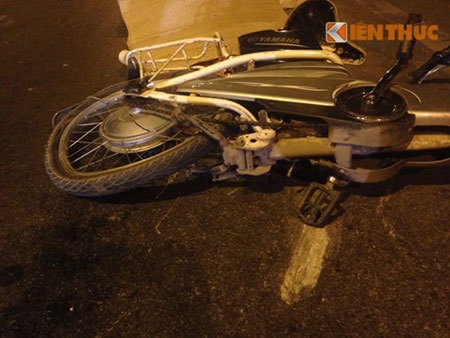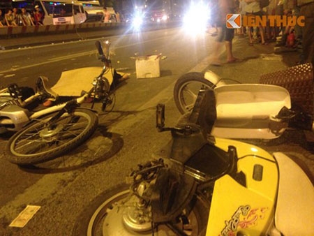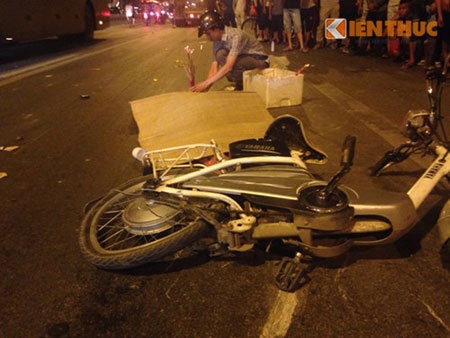 tại hiện trường: 2 chiếc xe đạp điện ngã đổ cạnh nhau cùng với xác nận nhân xấu số. |