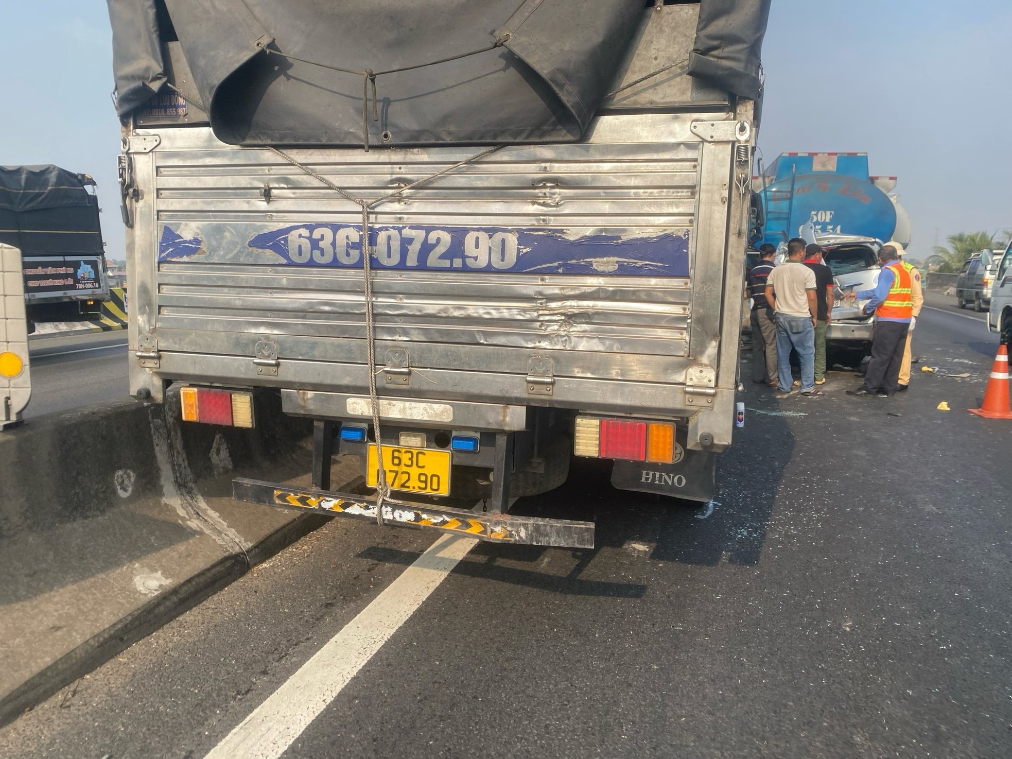 Khi đến đoạn thuộc địa bàn xã Thanh Phú, huyện Bến Lức, tỉnh Long An thì tông vào phía sau ô tô 7 chỗ mang BKS51A-145.58 do tài xế Trần Xuân Thiện (39 tuổi, ngụ tỉnh Cần Thơ) điều khiển chạy phía trước.
