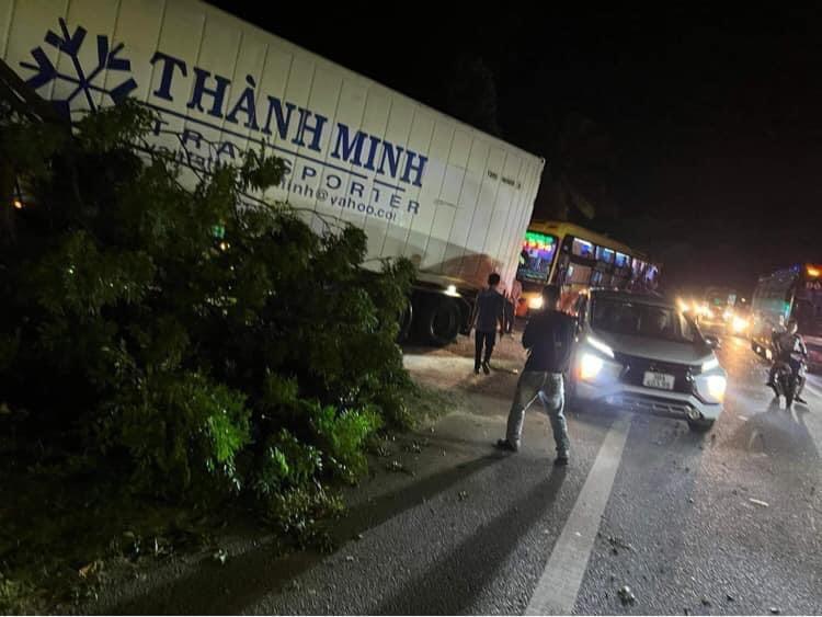Lúc này, xe container BKS 51C - 638.37 kéo theo romooc 51R - 127.62 lưu thông theo hướng Nam - Bắc, bất ngờ tông vào phần hông phía sau xe khách đang dừng giao hàng. Cú tông mạnh, khiến xe khách tông tiếp vào phía sau xe 5 chỗ.