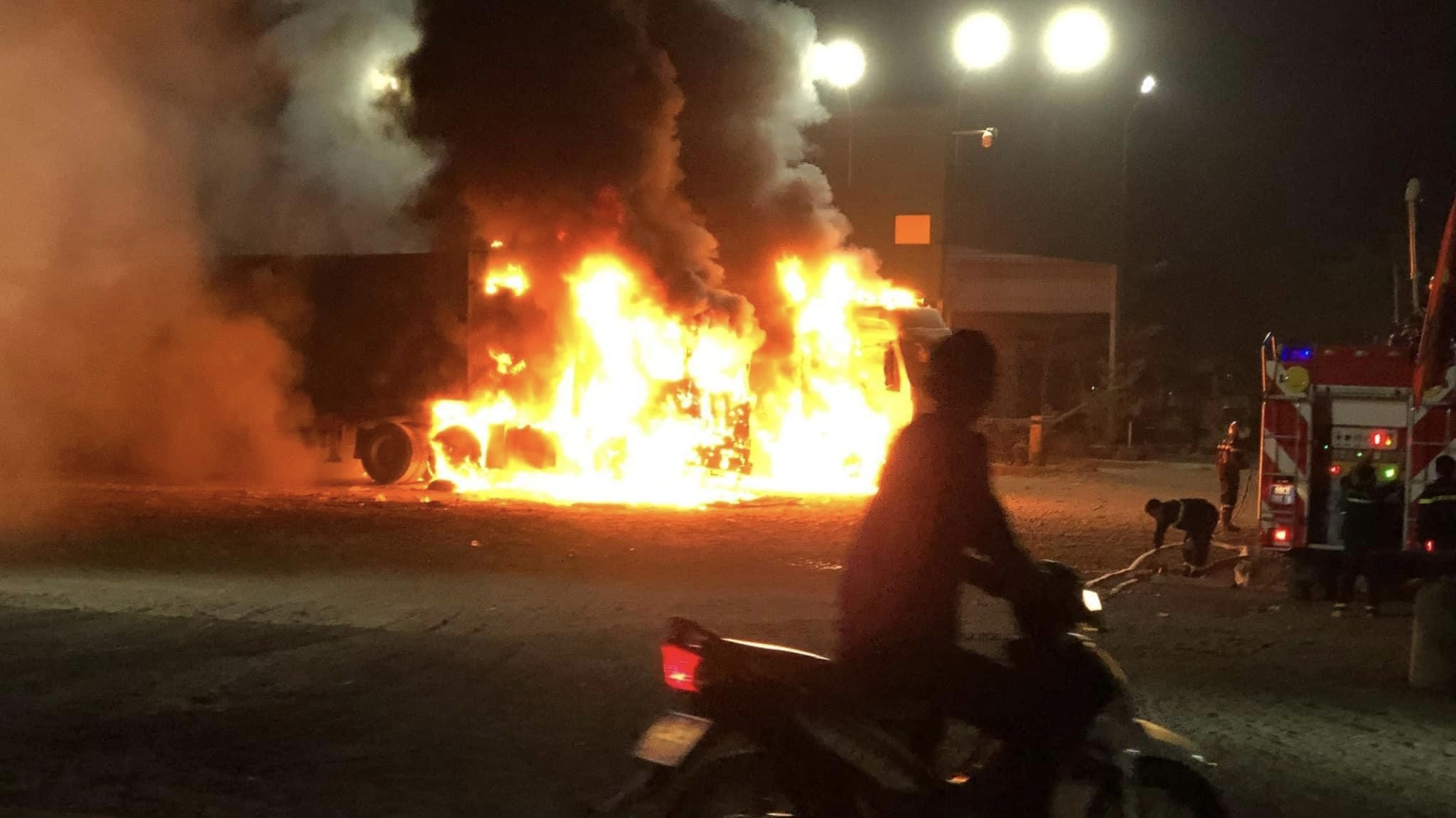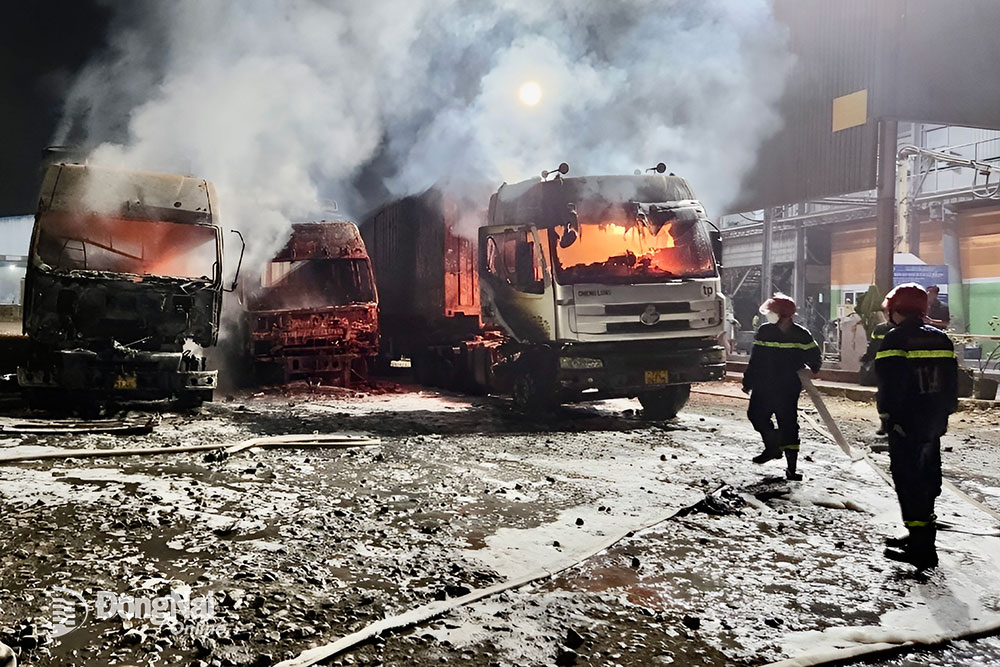 Theo VietNamNet, khoảng 22h15 ngày 3/3, người dân phát hiện một vụ cháy lớn tại bãi xe trên đường Phan Đăng Lưu (phường Long Bình, TP Biên Hòa). Tại hiện trường, 2 xe đầu kéo và 1 xe tải đậu cạnh nhau bốc cháy dữ dội.