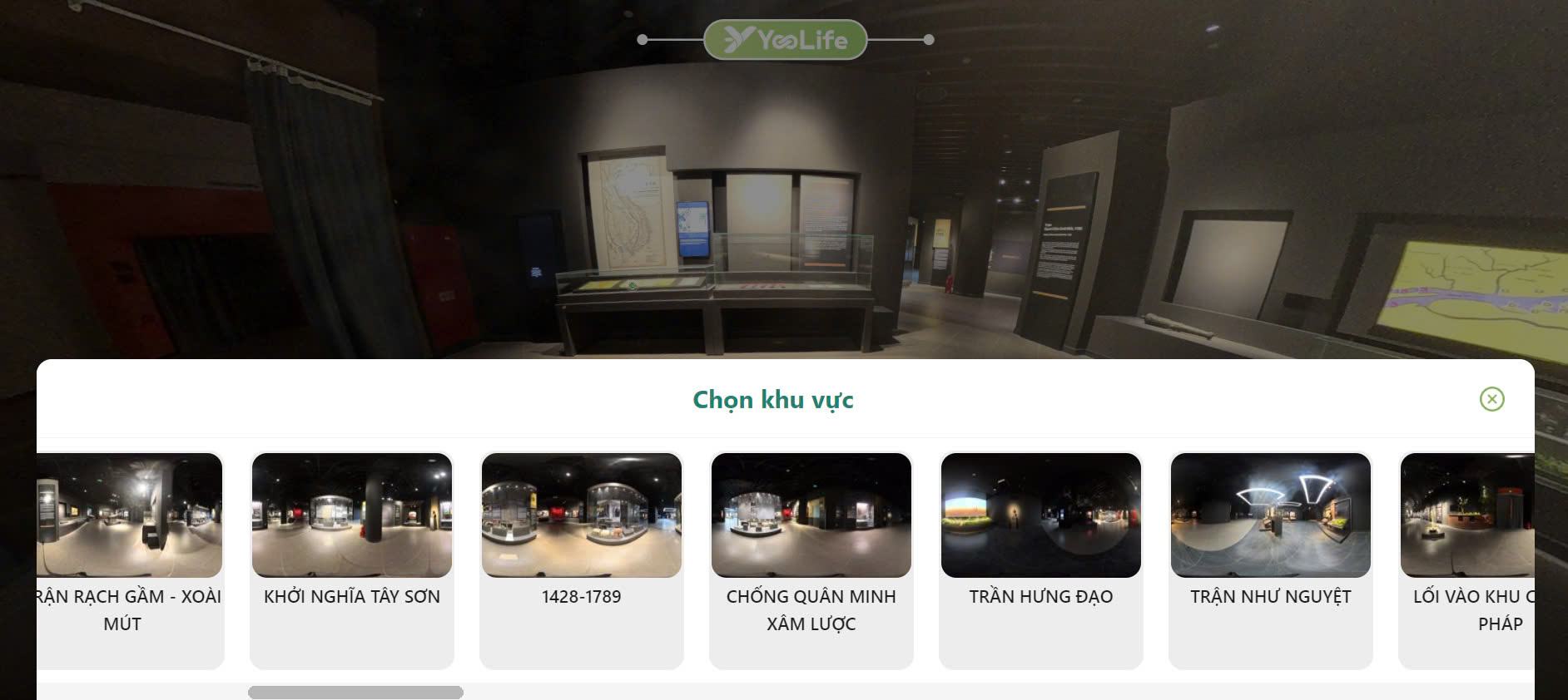 Bước 3: Chọn phần Khu vực để xem từng khu trưng bày theo các cuộc kháng chiến, theo giai đoạn lịch sử của dân tộc.