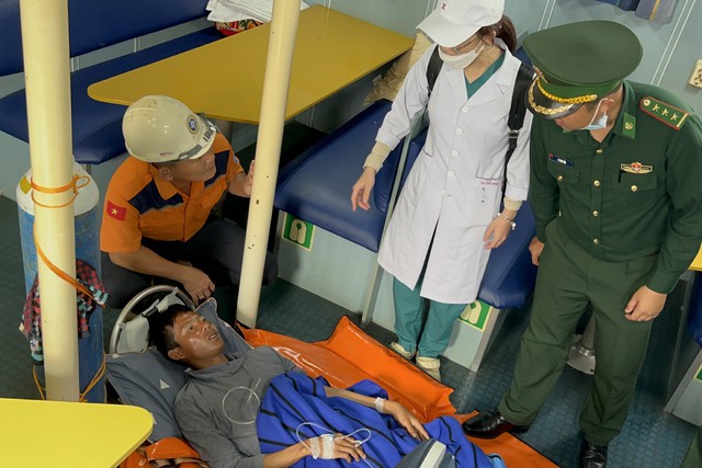 Sau khi trải qua ca cấp cứu, Nhơn tiếp tục được chuyển lên tàu SAR 412 để được chăm sóc y tế đặc biệt và khẩn trương đưa về bờ.