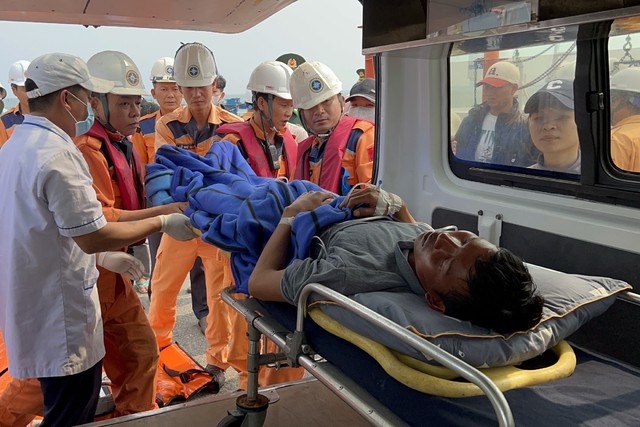 Ông Tâm kêu gọi đất liền ứng cứu và cùng tàu hướng vào bờ. Họ đi được nhiều giờ thì gặp được tàu của Trung tâm Phối hợp tìm kiếm, cứu nạn hàng hải khu vực II (Danang MRCC). Các y bác sĩ của tàu cứu nạn lập tức đưa nạn nhân lên tàu tiến hành sơ cứu.