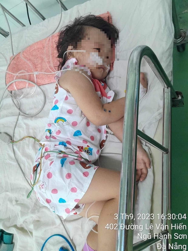 3 con của chị đều bị ong chích hàng chục mũi tại nhiều vị trí, nhất là phần đầu. Cụ thể, bé út 3 tuổi bị đốt 53 mũi, bé thứ hai bị 55 mũi, bé lớn 23 mũi. Hiện cả 3 đã được chuyển ra điều trị tại Bệnh viện Phụ sản - Nhi Đà Nẵng.