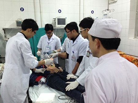 Trong 4 ngày nghỉ lễ, Khoa Cấp cứu - BV Việt Đức luôn trong tình trạng quá tải. Trưa 4-1, liên tục các ca cấp cứu do TNGT được chuyển tới từ nhiều địa phương như Hưng Yên, Nghệ An, Bắc Giang. Trong phòng hồi sức 1, các bác sĩ đang nỗ lực cấp cứu cho một nạn nhân là nam thanh niên 25 tuổi (ngụ tỉnh Hưng Yên) bị hôn mê, đa chấn thương do TNGT. Sau 15 phút bóp bóng liên tục nhưng nạn nhân vẫn chưa có dấu hiệu tự thở. Theo người nhà, sáng 4-1, nạn nhân lấy xe máy ra ngoài được ít phút thì bị TNGT. Sau khi được sơ cứu tại một bệnh viện gần nhà, bệnh nhân được chuyển đến Hà Nội. Một bác sĩ trong ca trực cấp cứu cho biết tình trạng nạn nhân rất nặng, phải chờ đến khi tự thở được mới tiếp tục chỉ định xét nghiệm để đánh giá tổn thương. Theo đánh giá ban đầu, bệnh nhân có thể bị chấn thương sọ não, chấn thương cổ.