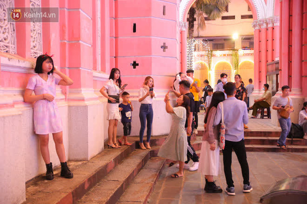 Bên cạnh những góc check-in được trang trí sẵn, giới trẻ khi đến đây còn rất thích chụp choẹt với background màu hồng "ảo diệu" ở nhà thờ.